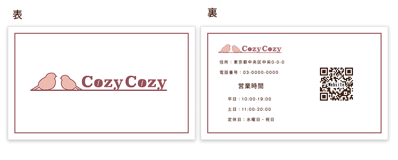 Cafe CozyCozyのロゴやカラーを活かし、店舗の雰囲気が伝わるショップカードを制作。